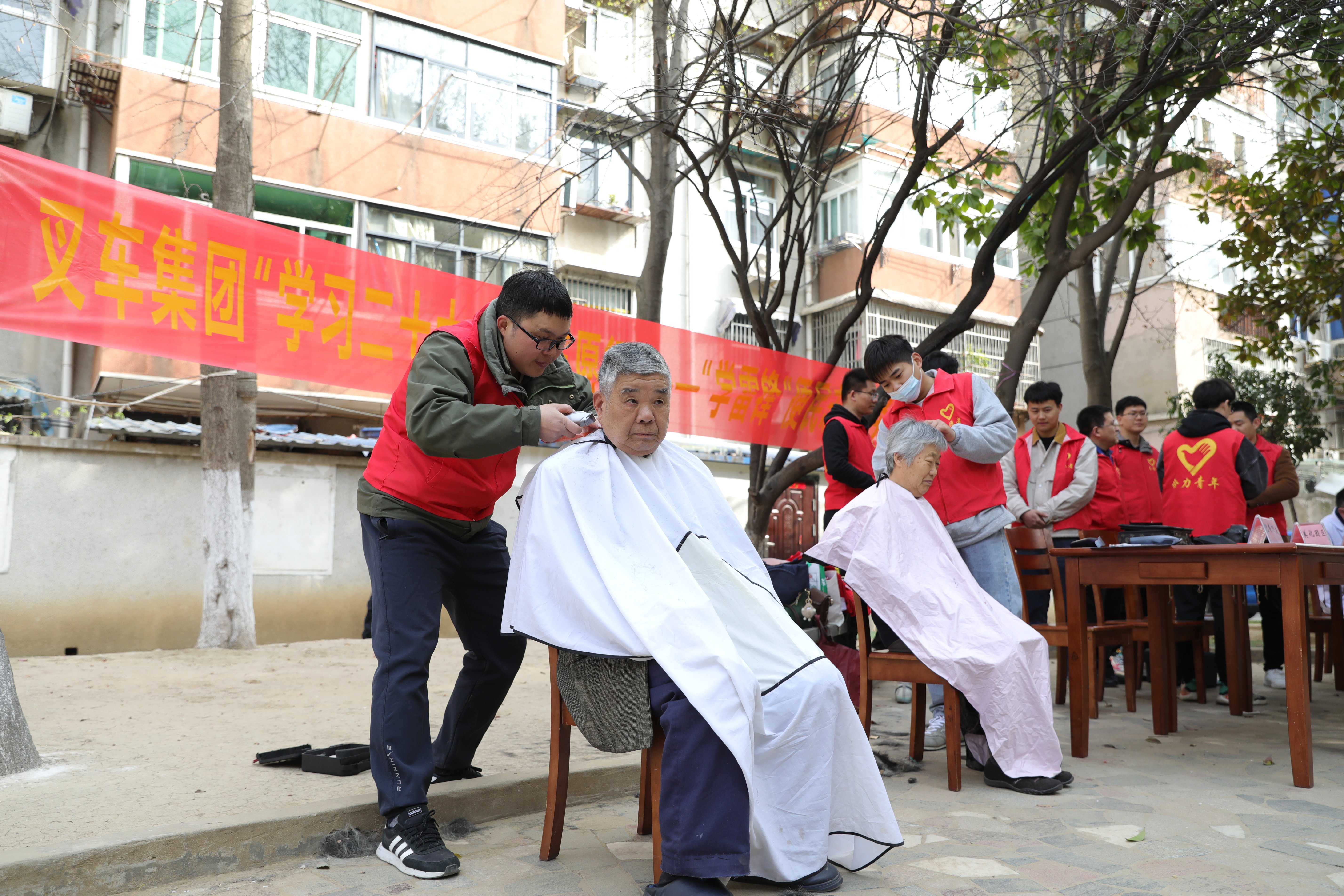 3月12日,合力家園一群身穿合力志愿者紅馬甲的年輕人特別惹人注目,他們或坐在一字?jǐn)[開(kāi)的服務(wù)咨詢臺(tái)前為居民量血壓,或耐心的為前來(lái)咨詢法律服務(wù)的居民答疑解惑,或嫻熟的揮動(dòng)手中的剃刀為居民免費(fèi)理發(fā),或主動(dòng)上門(mén)為居民維修電器,或穿梭在樓道街巷進(jìn)行義務(wù)清...